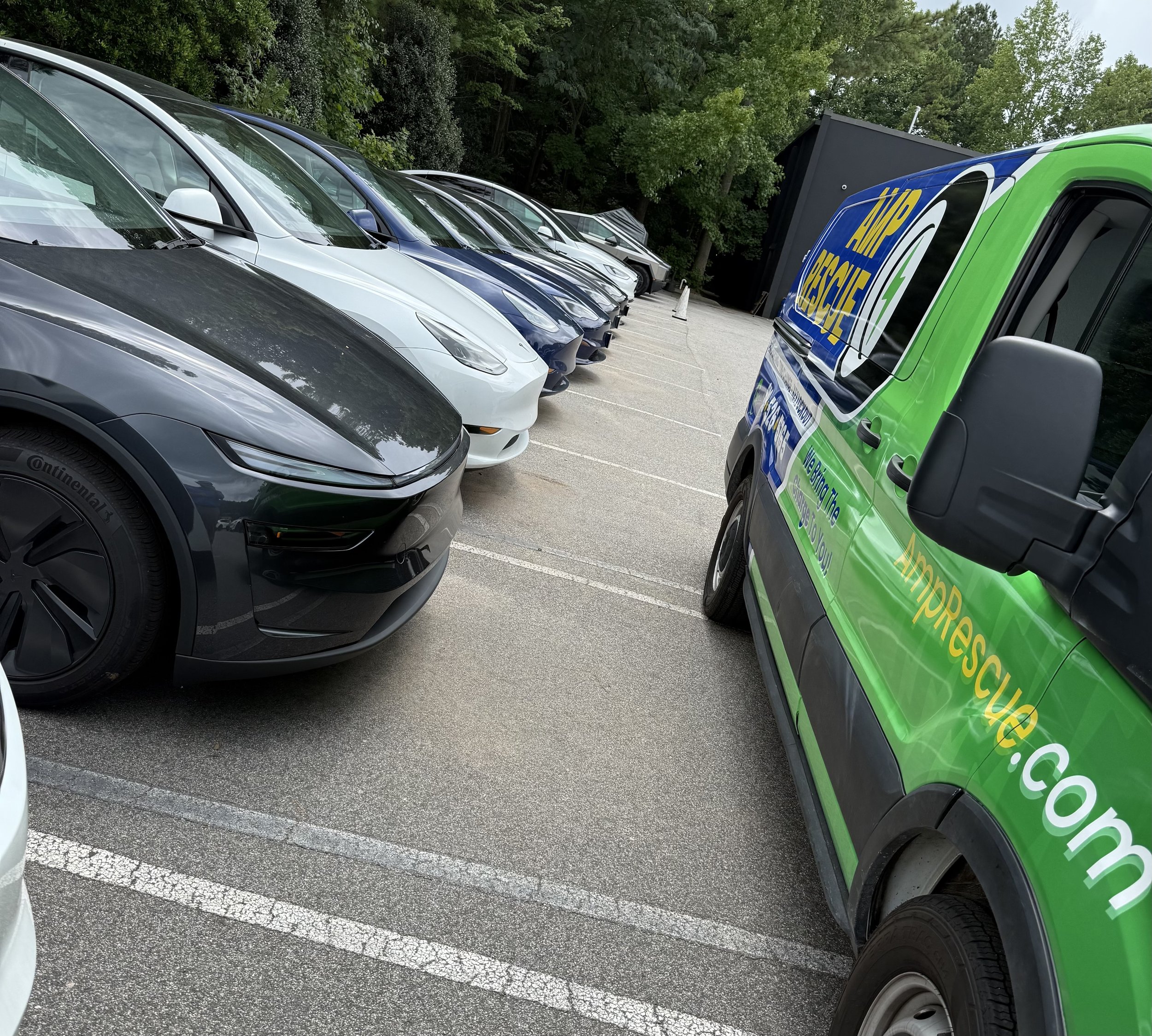 AmpRescue is a mobile EV charging and roadside assistance service based in North Raleigh, NC. We serve drivers across Raleigh, Durham, Cary, Chapel Hill, Wake Forest, Rolesville, Youngsville and the entire NC Triangle.